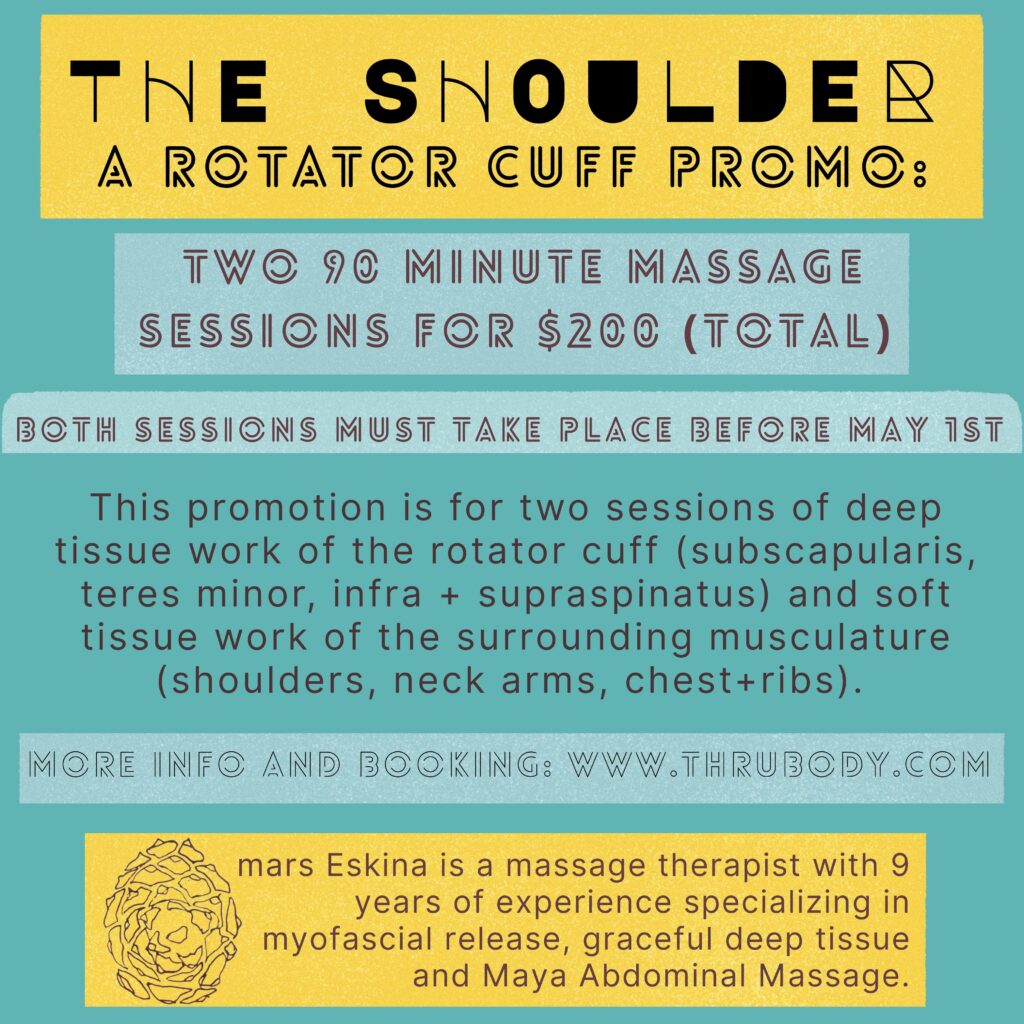 THRUBODY is an approach honoring body autonomy, consent and spiritual, ancestral and earthly connections. It is an integration of shiatsu, deep tissue, myofascial release, abdominal massage from the Masawal Maya lineage, spiritual and ancestral work, nervous system awareness and ceremony.